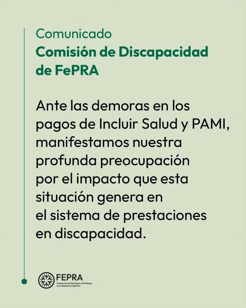 Ante las demoras en los pagos de Incluir Salud y PAMI, manifestamos nuestra profunda preocupación por el impacto que esta situación genera en el sistema de prestaciones en discapacidad.El incumplimiento de la Ley de Emergencia en Discapacidad compromete la continuidad de apoyos y tratamientos, afectando de manera directa el ejercicio...