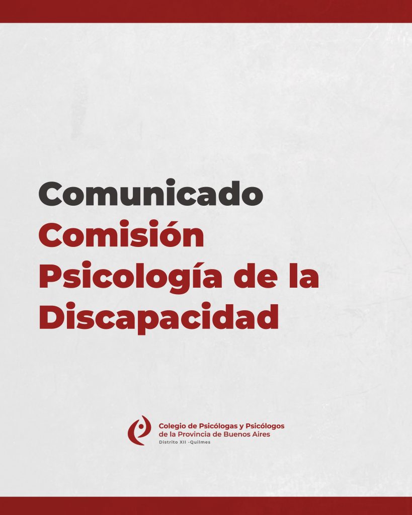 LA COMISIÓN DE PSICOLOGÍA DE DISCAPACIDAD DEL DISTRITO XII HACE EXTENSIVA LA INFORMACIÓN PARA LOS MATRICULADOS SOBRE LAS ACCIONES QUE SE ORGANIZARON PARA ESTA SEMANA ANTE LA PREOCUPANTE SITUACIÓN.